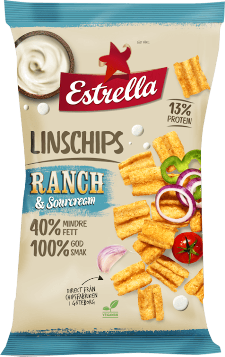 Chips don't have to be made of potatoes to be super good! Estrella's Lentil chips Ranch & Sour Cream is a tasty proof of that. The seasoning has a generous taste of peppers, onions, tomatoes, garlic, sour cream - and a bit of peppery aftertaste. The crispy base of lentil flour also contains 13% protein and 40% fat less than regular chips. 110g bag Lentil chips Ranch & Sourcream is perfect to share. Surely we mentioned that it is vegan and gluten free? 110g bag